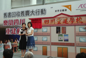 为帮助中国四川的学童在五一二大地震后重拾教育及技能培训的机会,东方物流运输队伍义不容辞地支持世界宣明会最近举办的“旧书回收义卖大行动”,有关收益将用作四川的地震重建校园项目。所以东方物流团队由七月份起义务运送超过数十万本旧书往不同的目的地,包括粉岭和官塘仓库,以及将军澳新港城广场。